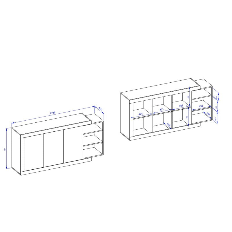 La commode Lumeria 3 portes – 180 cm allie design contemporain, élégance naturelle et praticité quotidienne. Moins imposante que sa version 200 cm, elle conserve néanmoins une présence affirmée grâce à ses lignes nettes et ses finitions contrastées, idéale pour un salon moderne, une salle à manger élégante ou une entrée structurée au Maroc.