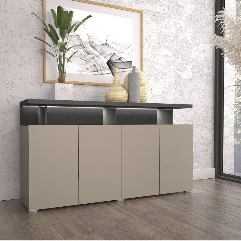 Le buffet Calvéra 4 portes allie fonctionnalité et design moderne, offrant un rangement optimal tout en apportant du caractère à votre intérieur. Avec ses 153 cm de largeur, il crée un bel espace de stockage sans encombrer visuellement votre salon, salle à manger ou couloir.