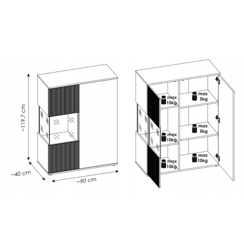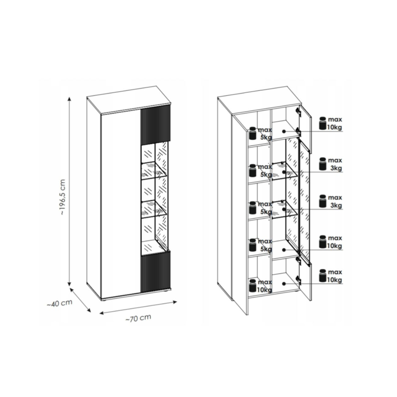 • LED intégrée et verre trempé sur vitrines pour un rendu premium