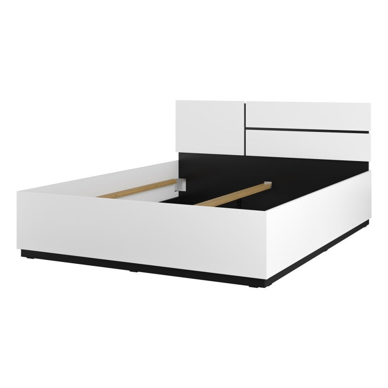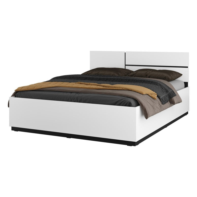 Ce lit au design contemporain se distingue par sa tête de lit graphique soulignée d’un liseré noir et ses lignes épurées, apportant une touche moderne et élégante à votre chambre. Sa structure en panneaux de particules haute densité, combinée à un sommier à lattes en bois multiplis, assure solidité, confort et durabilité.